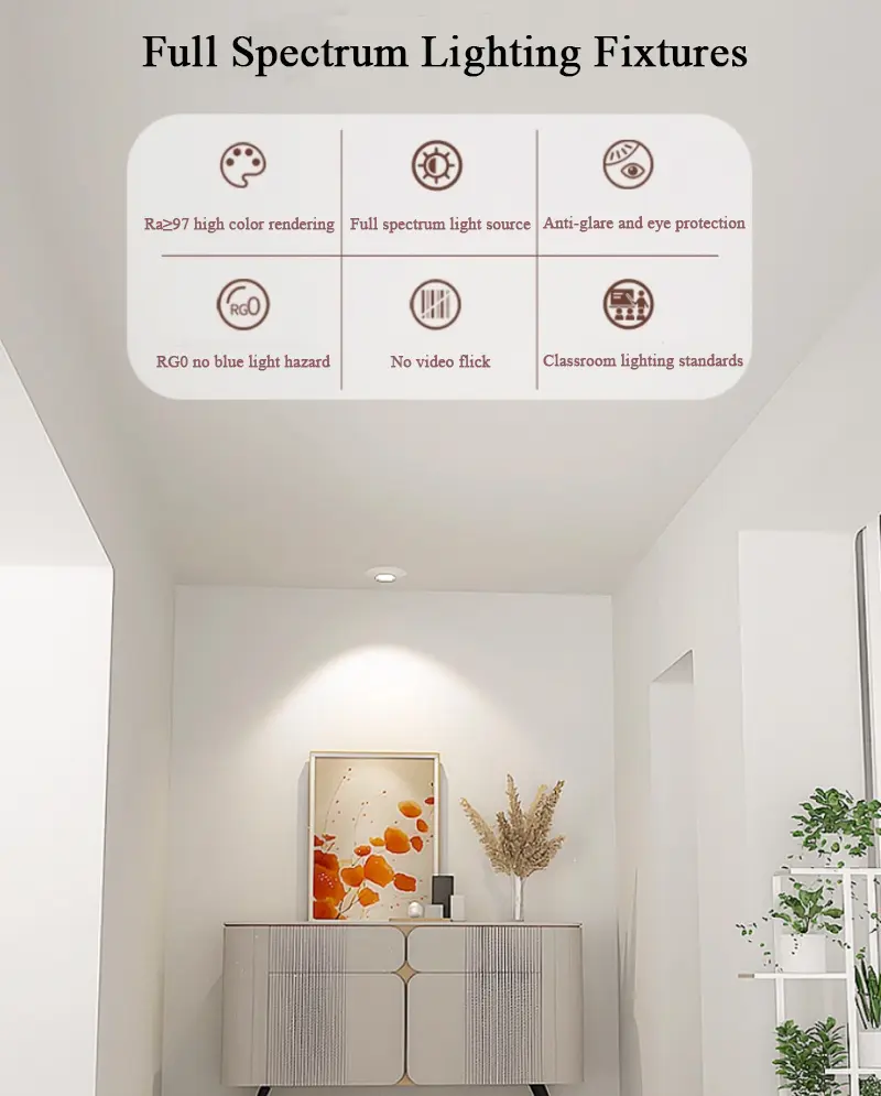 Full-spectrum Lighting Fixtures adopt high-quality full-spectrum lamp beads, whose spectral curves are infinitely close to sunlight. By supplementing the red and green light bands in visible light, they achieve "smooth spectrum" illumination . Such light not only delivers more comfortable visual experience but also restores the true colors of objects with a color rendering index (Ra) as high as ≥98, effectively reducing color deviation and improving visual recognition.